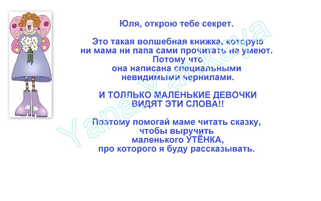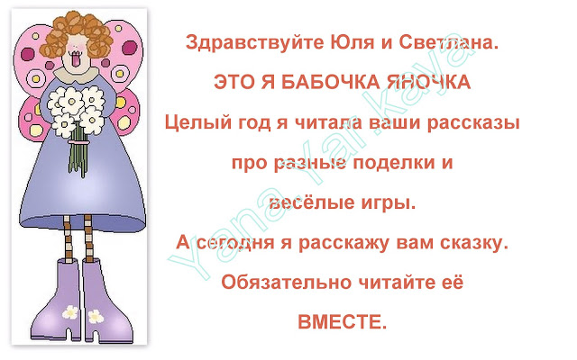 Первая реакция и мамы и дочери меня порадовала. Девочка приняла всё всерьёз: мы с ней "знакомы" больше полутора лет. Она добросовестно играла с мамой в Маленький Театр, который я печатала у них на сайте. Вот она и поверила, что Бабочка Яночка ей личное письмо прислала и велела читать красные буквы.