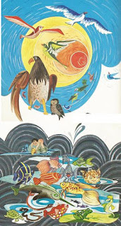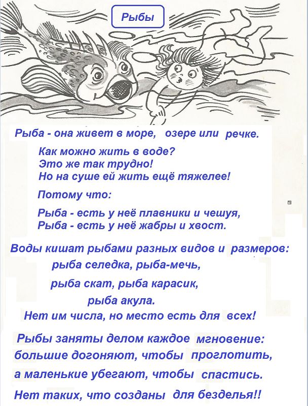 В морях, океанах и реках, озерах, ручьях и лужах обитают, созданные Всемогущим, крокодилы и киты, головастики и лягушки, рыбки маленькие и огромные. Для жизни в воде не забыл Б-г наделить водные существа плавниками, хвостами, чешуей, жабрами. Раскрасил он их в разные чудесные цвета для красоты и безопасности.