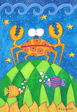 Первая часть посвящена рисованию маленьких простых рыбок разной формы и рисованию крабика. Вот с него и начнем.