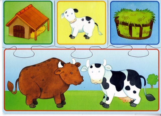 Интересный паззл на аналогичную тему и с двумя новыми дополнениями: где живут коровы и быки и чем они питаются.