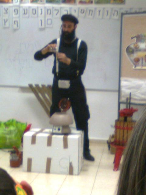 Самая интересная часть программы, на мой взгляд, была подготовлена представителем религиозного движения, которое много сил вкладывает в знакомство детей с историей еврейского народа и его оброзом жизни. На Песах они показывают детям фильмы и делают вместе с ними настоящую мацу. А в Хануку показывают как сделать масло из плодов оливкового дерева. Самым подробным образом и с демонстрацией всех процессов на настоящем оборудовании.