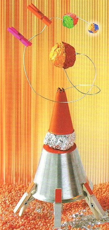 Главное - придать фигурке космонавта устойчивость. Для этого нижние детали нужно утяжелить. Космическая ракета со спутником дополнят вашу коллекцию поделок на тему космос.
