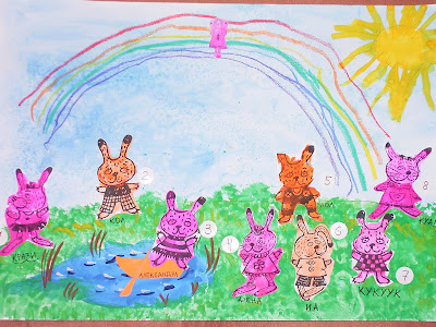 У Ирины Смирновой вы найдёте инструкцию как сделать аппликацию Кролик. и загадки про Волков. И также множество рисунков её дочки Эвники.