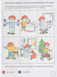 Приятная неожиданность ждала меня в этом альбоме с рабочими листами: на страничке 48 внизу нарисованы корявые крестики. Это восемь или девять лет назад мой старший внук занимался по этим листам и отмечал количество найденных предметов.