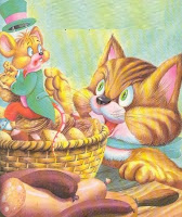 Побежала Мышка к Пекарю: "Прошу тебя, Пекарь, дай мне хлеба. Я отнесу хлеб Мяснику. Он даст мне мяса. Я отнесу мясо Фермеру, он даст мне сена. Я отнесу сено Корове, она даст мне молока, отнесу молоко Кошке и она вернет мне мой хвостик".